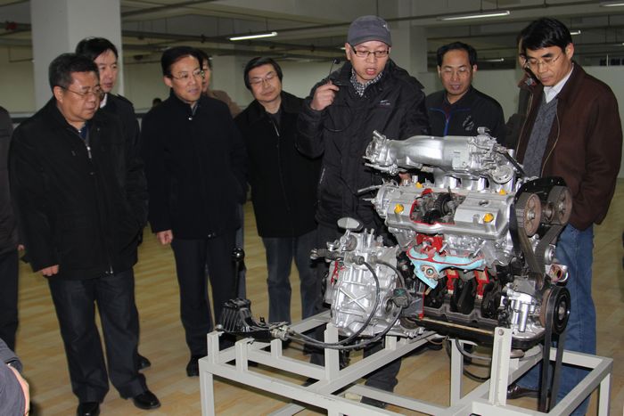 各位领导观摩汽车与物流学院汽车构造实训室
