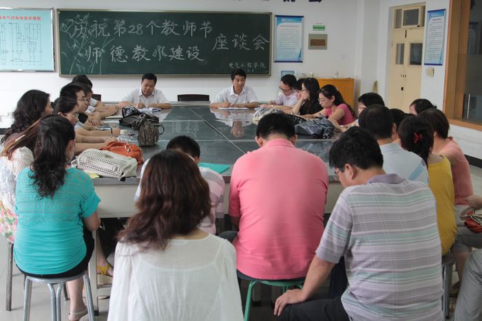 为了迎接第28个教师节的到来,9月5日,在学院统一部署下,各二级学院(部)分别召开了庆祝教师节暨师德教风建设座谈会。党委书记邓志辉、院长崔岩、党委副书记王天哲、副院长王晓江、党委副书记兼纪委书记刘永亮等9位党政领导与教务处、学生处、质管中心等职能部门负责人分别深入各二级学院(部)与广大教师欢聚一堂,共庆节日。