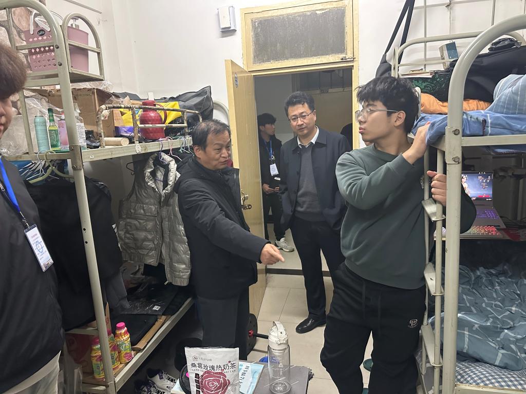 为落实11月19日陕西省委教育工委“做好校园安全稳定工作”的会议精神,进一步提高学生安全防范意识,消除公寓安全隐患,切实维护校园安全稳定。11月20日晚,学校党委副书记贺天柱带队,学生处全体工作人员和各二级学院总支书记、学工办主任及全体辅导员、班主任共同参与,对经开、渭城两校区学生公寓,进行了全面系统的安全卫生大检查。