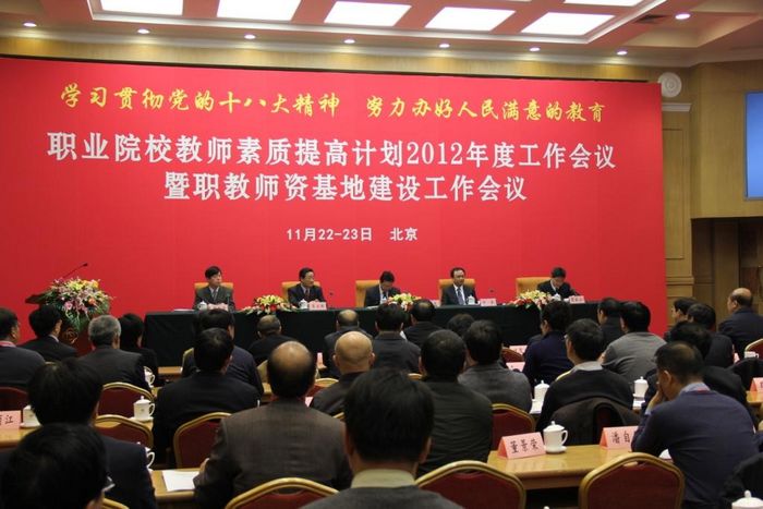 11月22日-23日,教育部“职业院校教师素质提高计划2012年度工作会议暨职教师资基地建设工作会议” 在北京召开,来自全国各地的100多家教育行政主管部门及院校代表参加了会议。
