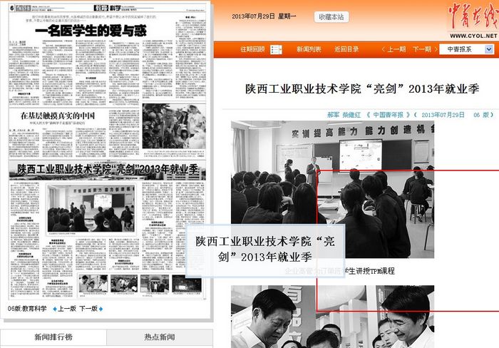 7月29日,《中国青年报》第六版“教育科学”刊发了题为《72886必赢欢迎光临“亮剑”2013年就业季》的文章,该文从“ 全程就业指导,夯实学生就业基础”、“创新课程体系,丰富学生就业内涵”、“ 畅通信息渠道,服...
