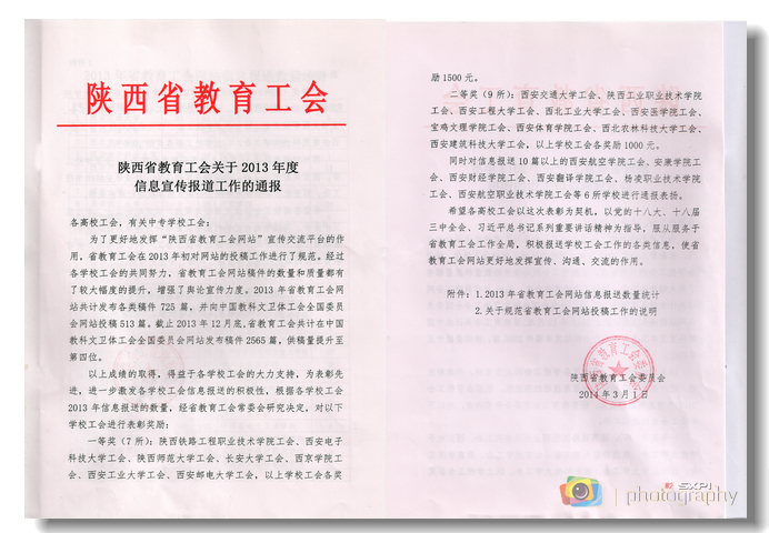 近日,陕西省教育工会通报了全省高校工会系统2013年度信息宣传报道工作情况,并对全省22所信息宣传报道工作表现突出的院校予以表彰。