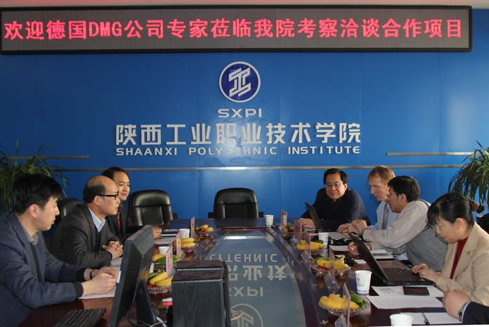 3月8日下午,德国DMG(德马吉)公司专家Frank Ellermann(法蓝克)、德马吉中国教育合作项目经理过霄虹、中国职业教育装备专业委员会金毅来我院考察洽谈合作项目。
